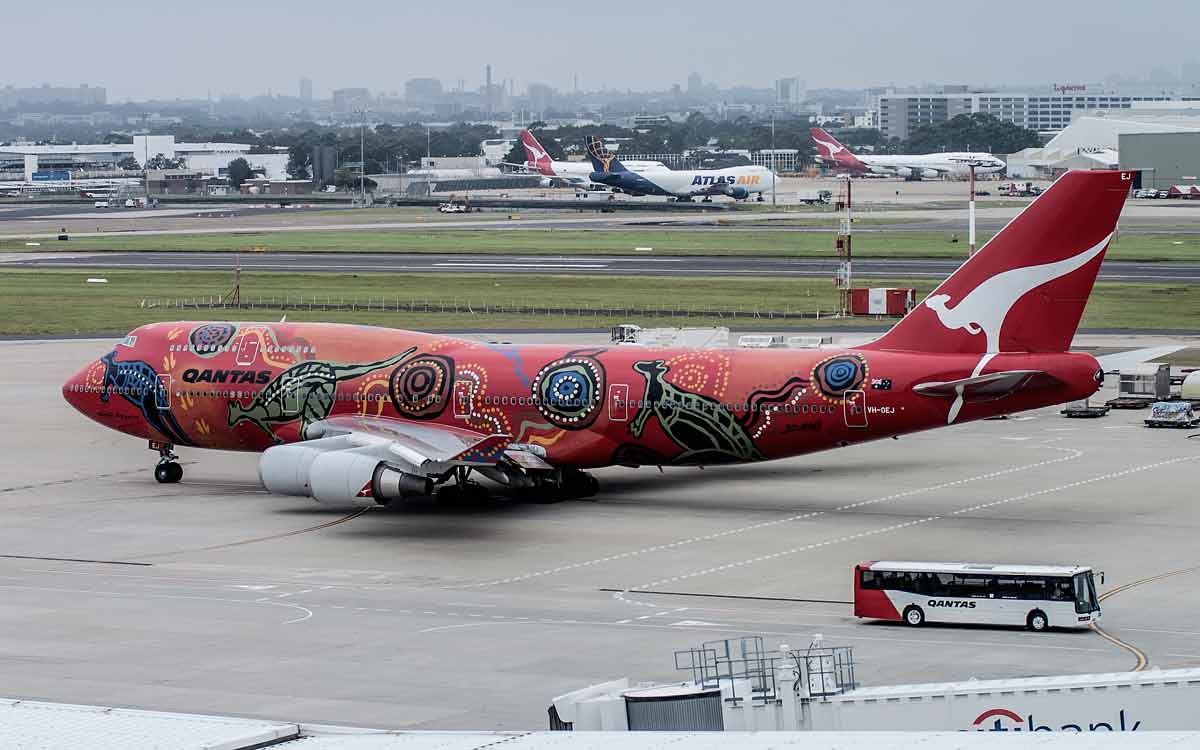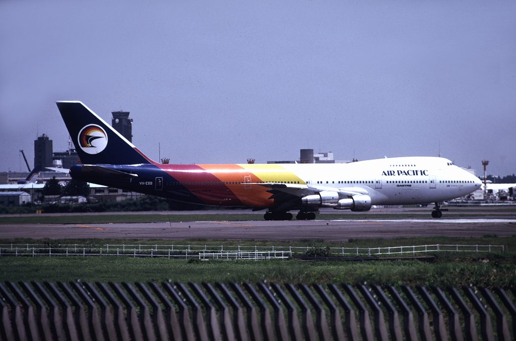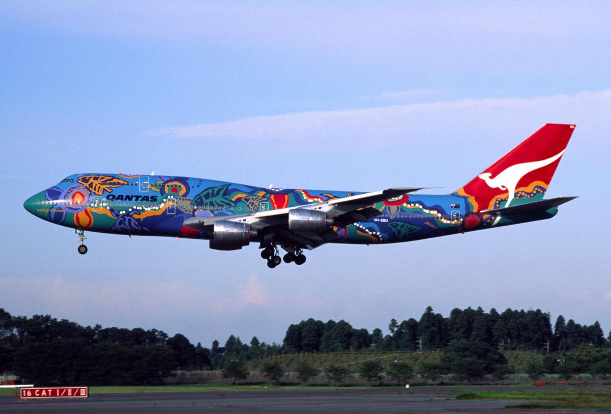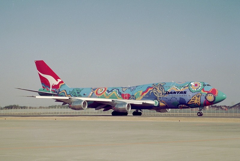 皆さんQANTASの747撮影には苦労していますね。私も成田で最後の撮影、と思って先月出かけましたが、初日は霧の中、 そして二日目は何と12時間遅れ、結局は5月に行った時の撮影が、最後に成田で撮った写真になりました。 これは霧にも遅れにも泣かなかった時、1999年8月21日に成田で撮ったB747-338(VH-EBU/製造番号23223/606)。 特別塗装機「Nalanji Dreaming」ですが、これに匹敵するデザインはデビューしませんね。