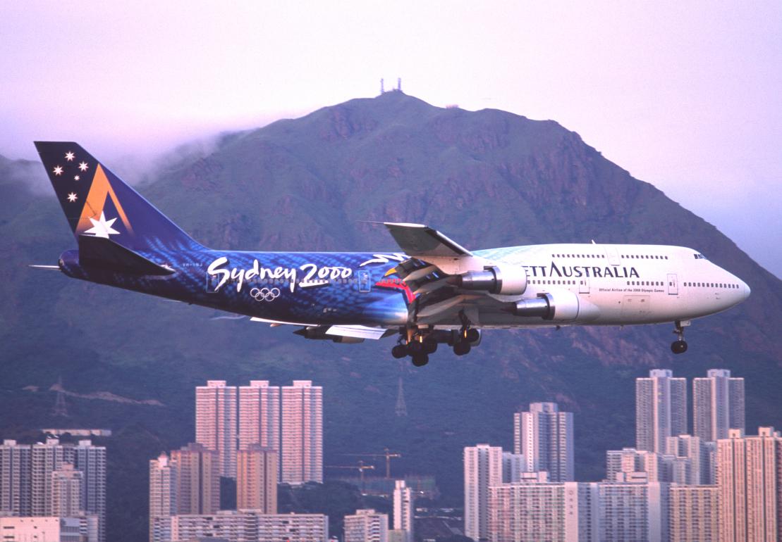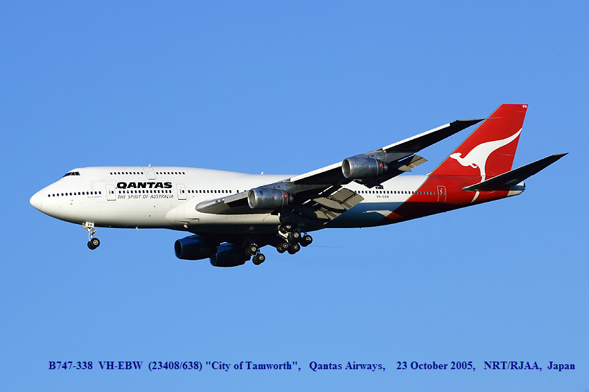 NARITA INTL R/W34L 20 SEP 2006 B747-338 VH-EBY Qantas Airways