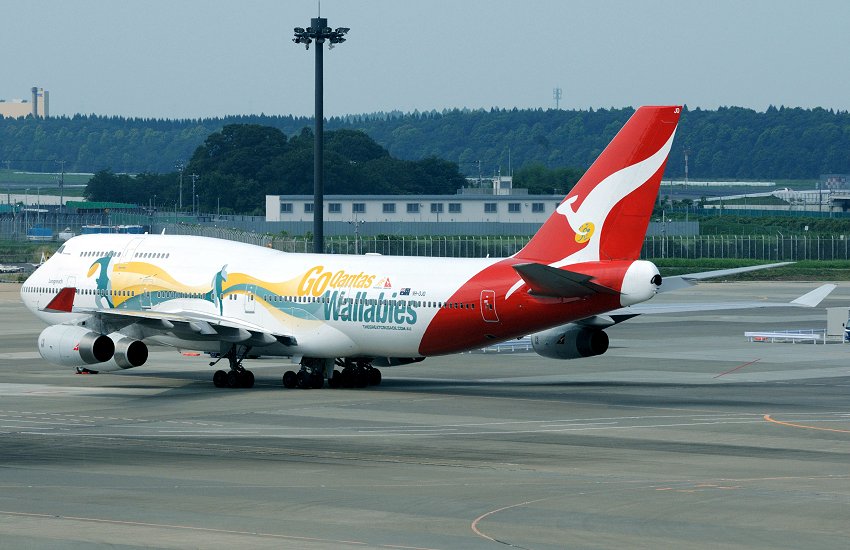 NARITA INTL R/W34R 18 APR 2015 B747-48E VH-OEB Qantas Airways