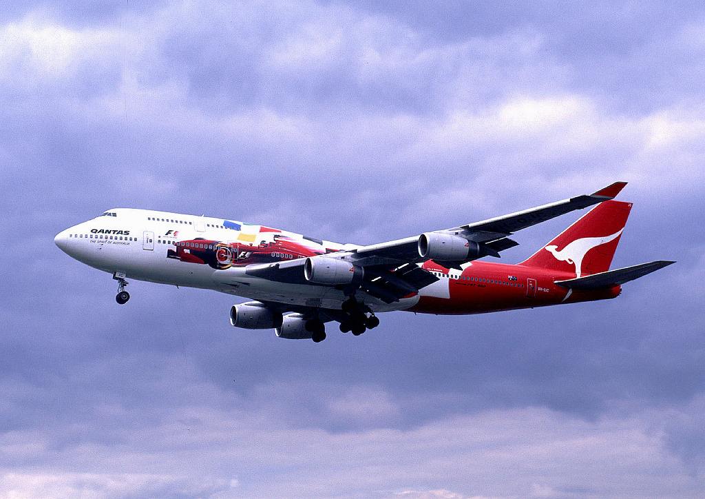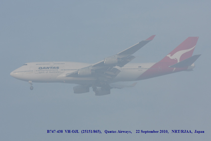 B747-438 VH-OJB (24373/746)、Qantas Airways、2010年10月11日、成田空港RWY34L着陸